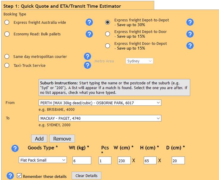 shipping board melb to perth