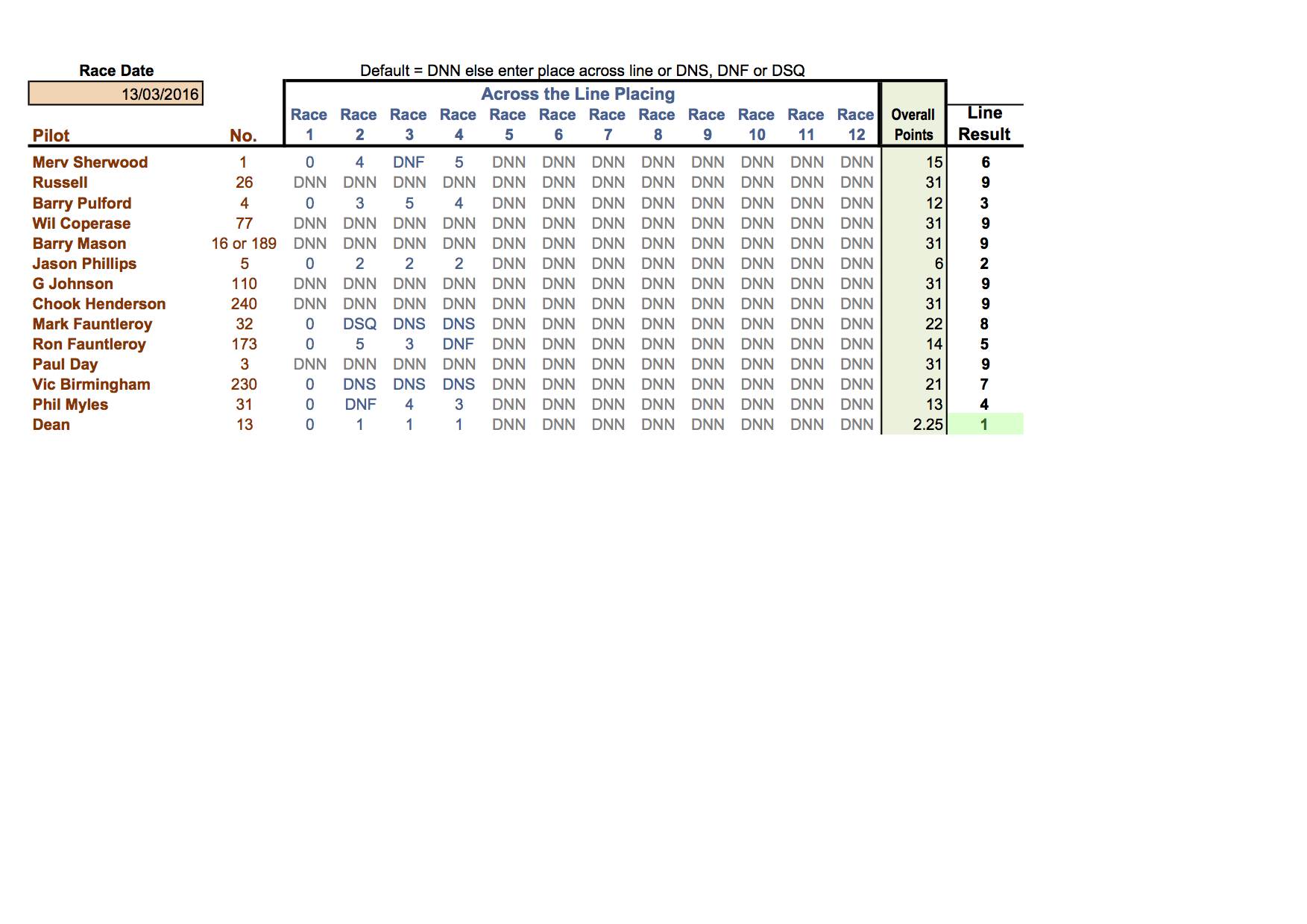 13 Mar 2016 5.6 Mini Club Championship Results