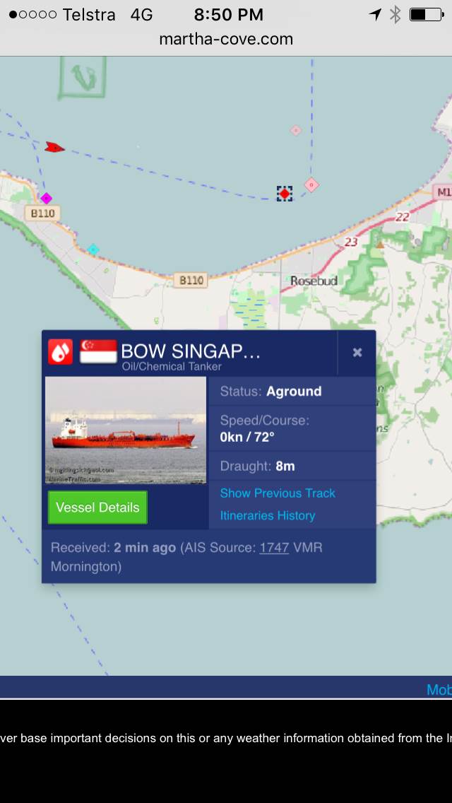 Ship aground on the sandbar off Rosebud