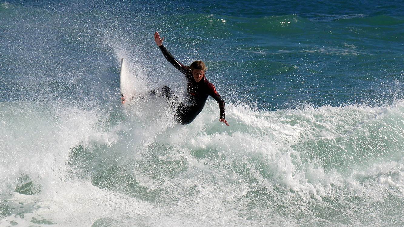 Surfing Trigg off the lip