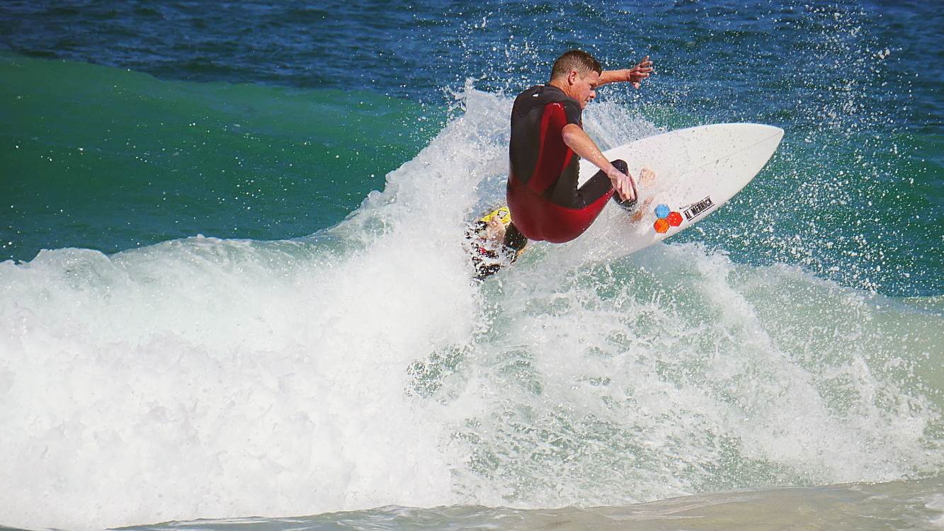 Surfing Trigg off the lip