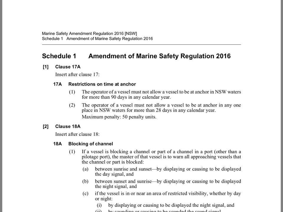 90 day limit per year on anchoring in NSW.
