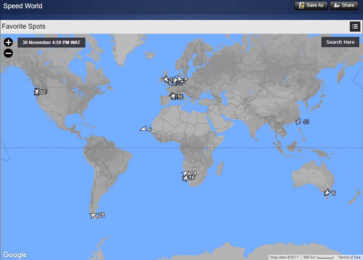 Windsurfing Speed World Map