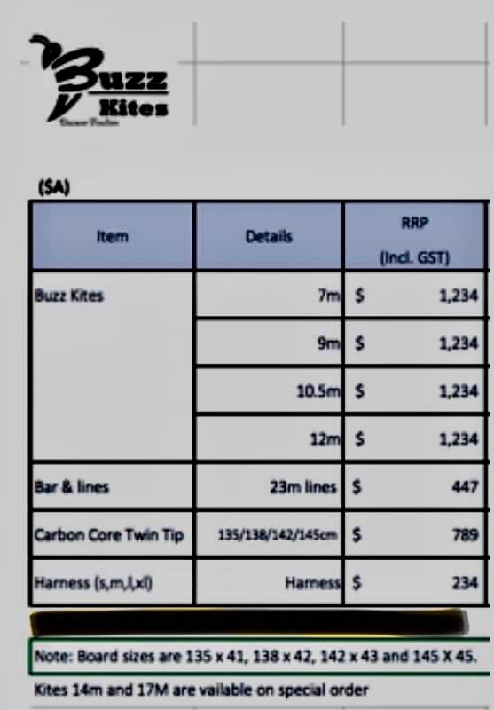 Kitesurfing Price list