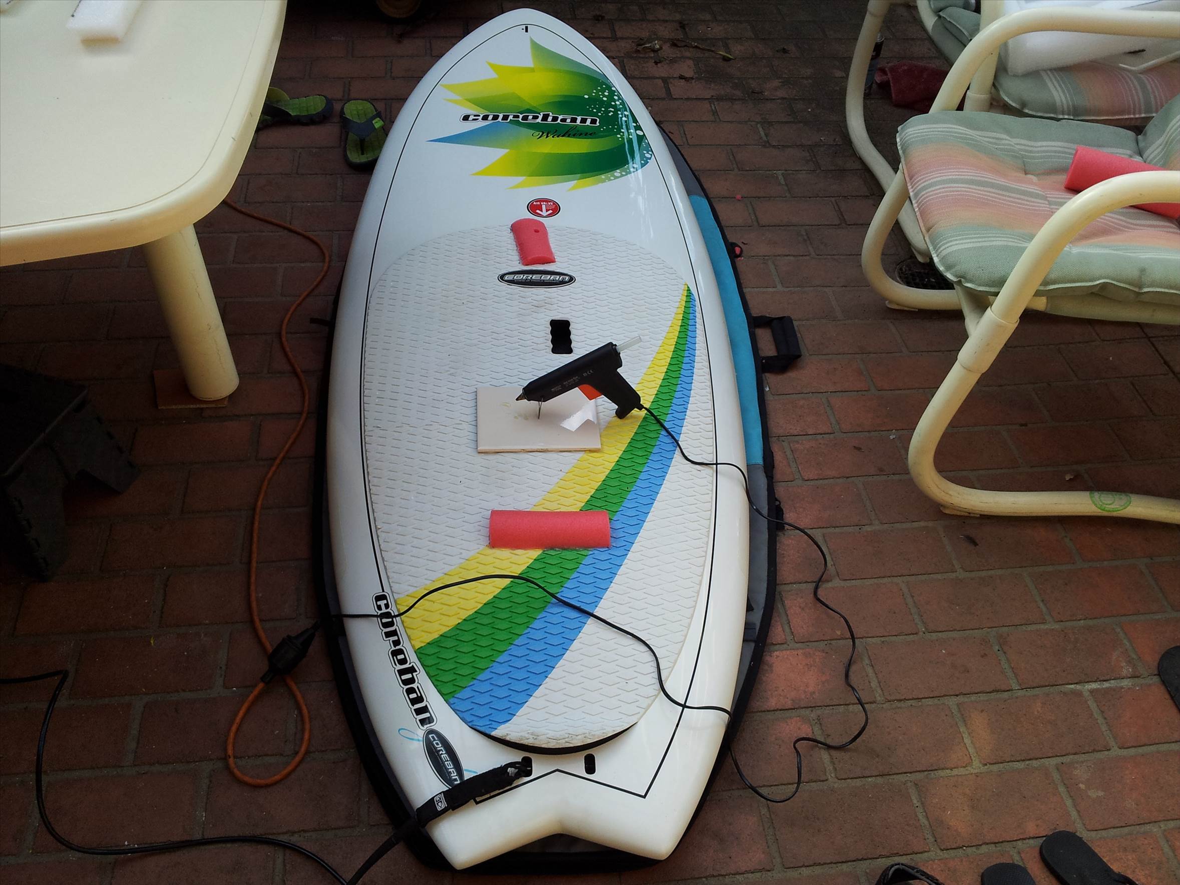 Pool noodle for deck foot markers & rear foot stop for foil boards.