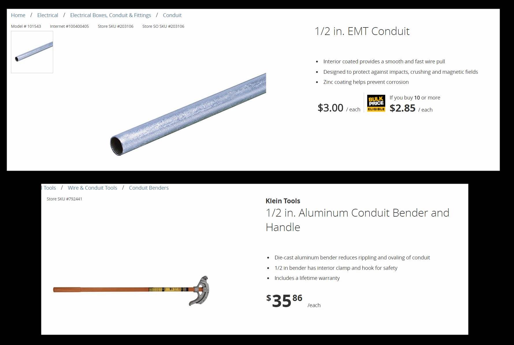 Home Depot Half Inch Conduit and Bender