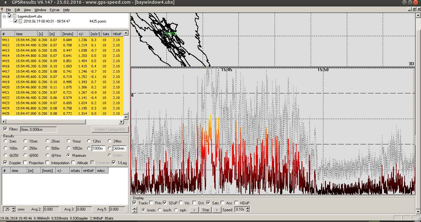 Windsurfing gps in window