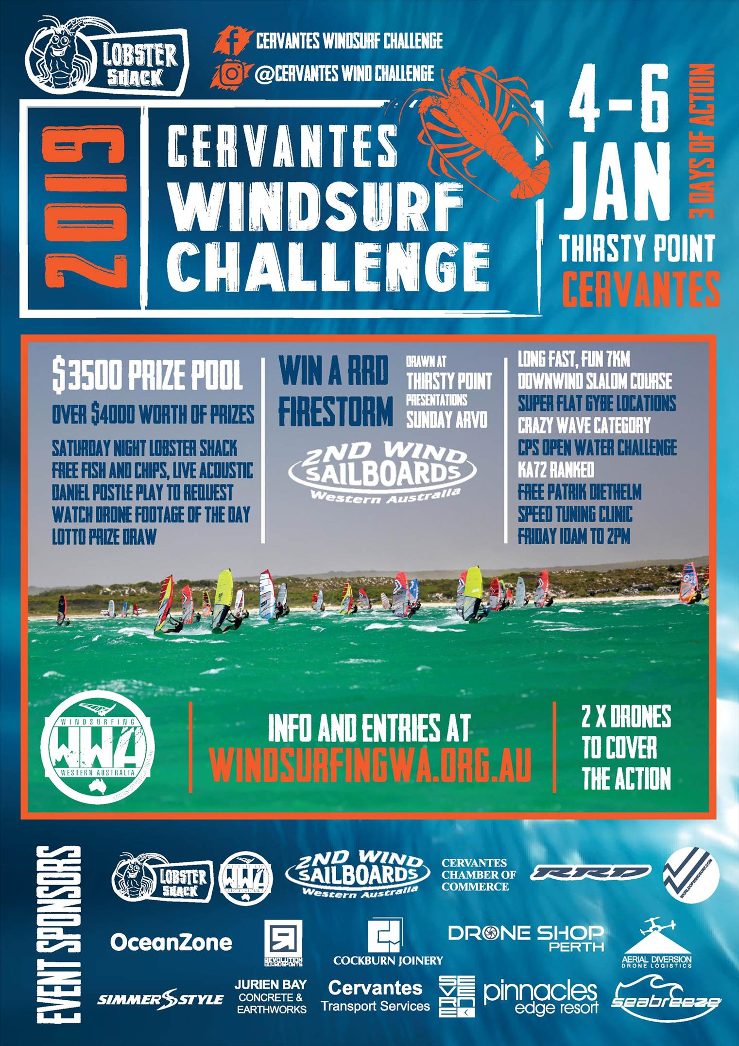 Lobster Shack Cervantes WIndsurf Challenge 4-6 JAN 2019 POSTER & T-SHIRT DESIGNS - ENTER NOW!