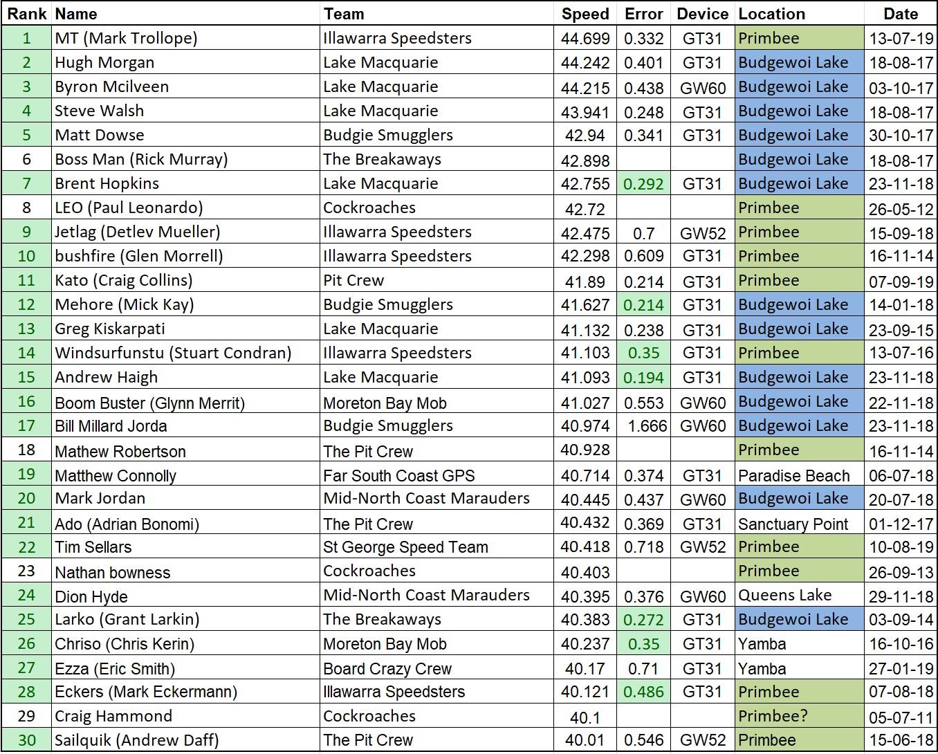 Fastest 2 Sec speeds in NSW (Update)