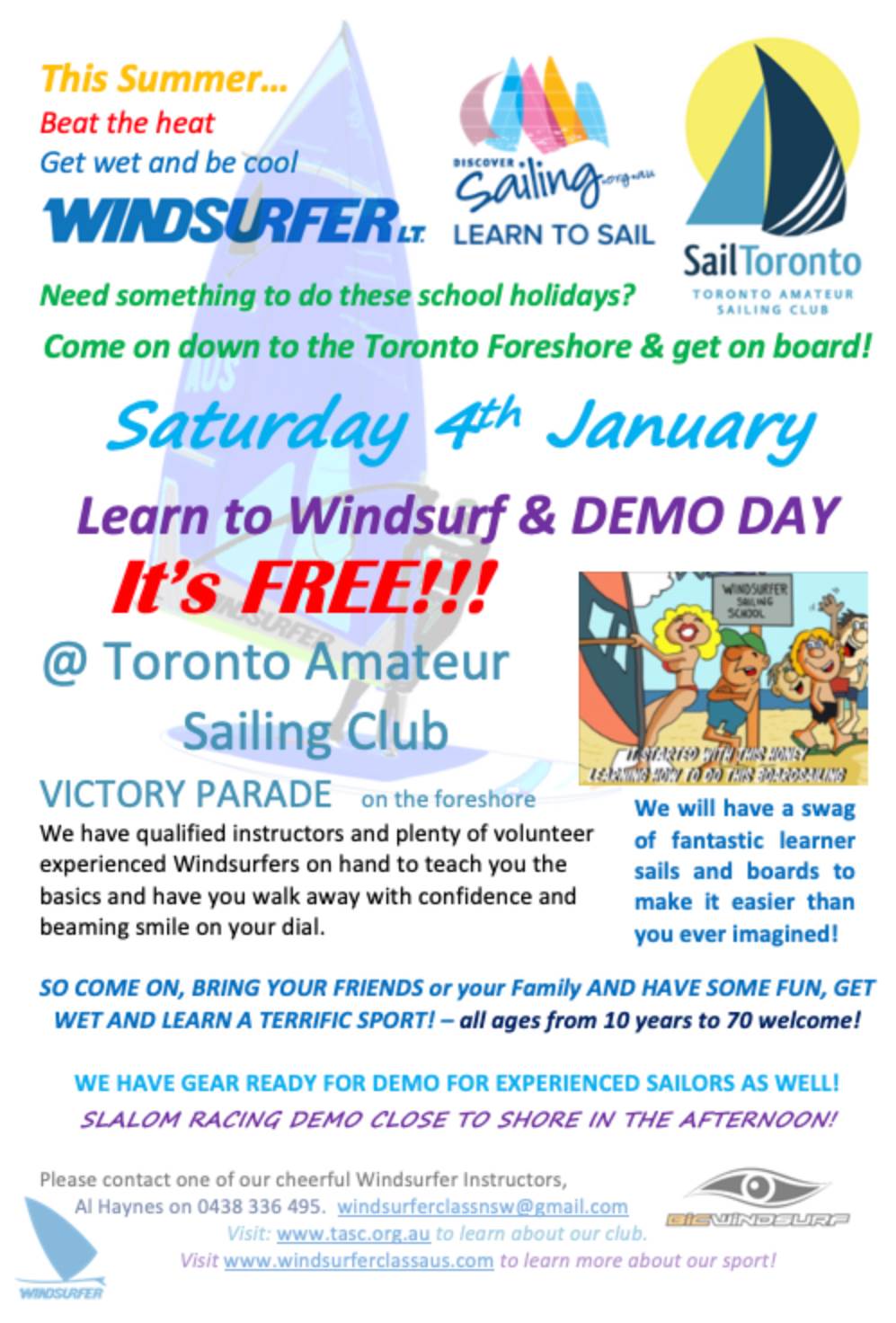 Toronto Amateur Sailing Club - Windsurfing on Lake Macquarie most Sundays.