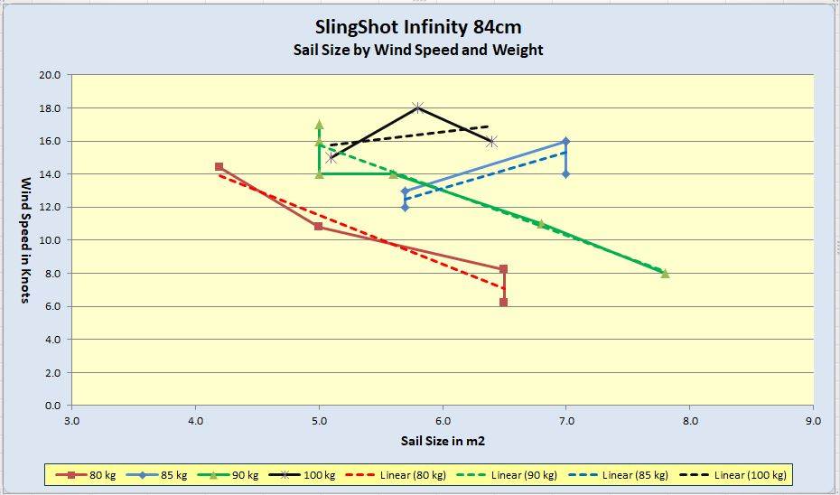 Slingshot Infinity 84cm - Sail size by wind and weight