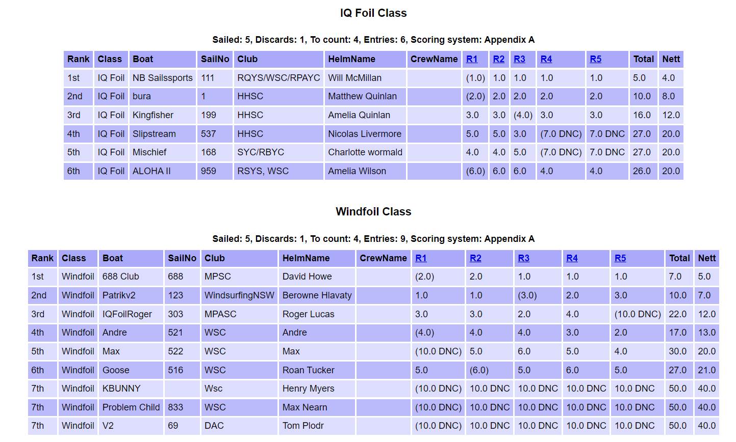 Windsurfing Day One Results