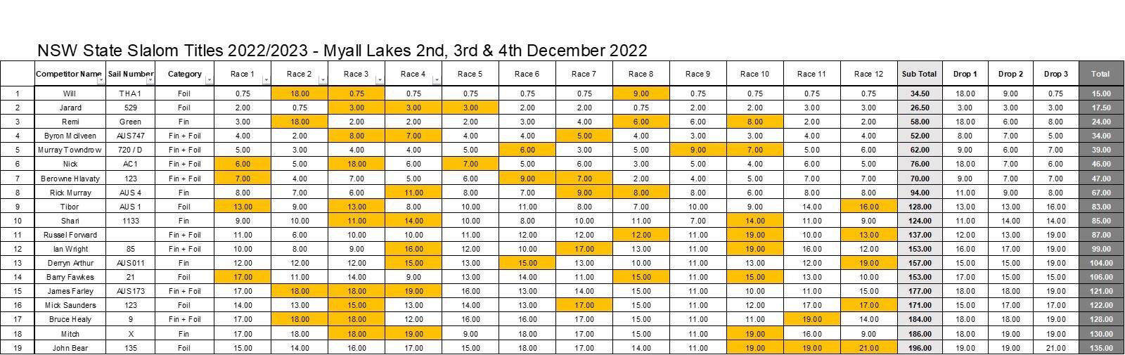 Windsurfing States 2022 Results