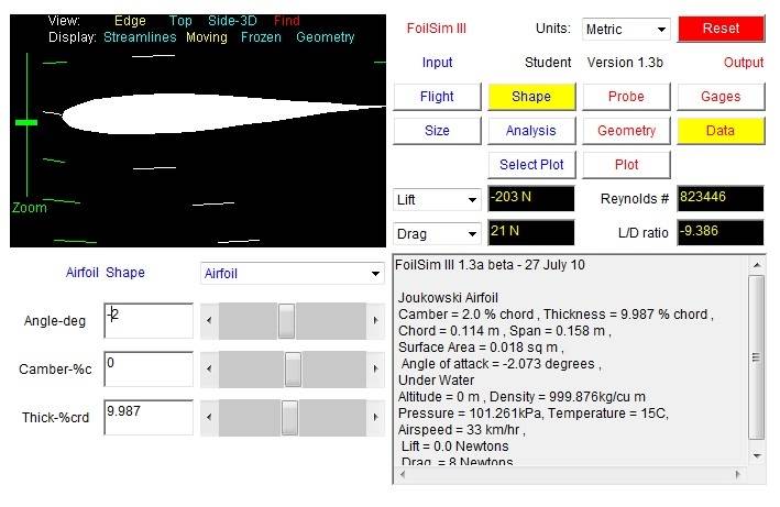 Windsurfing FoilSim -2 AoA, zero% camber