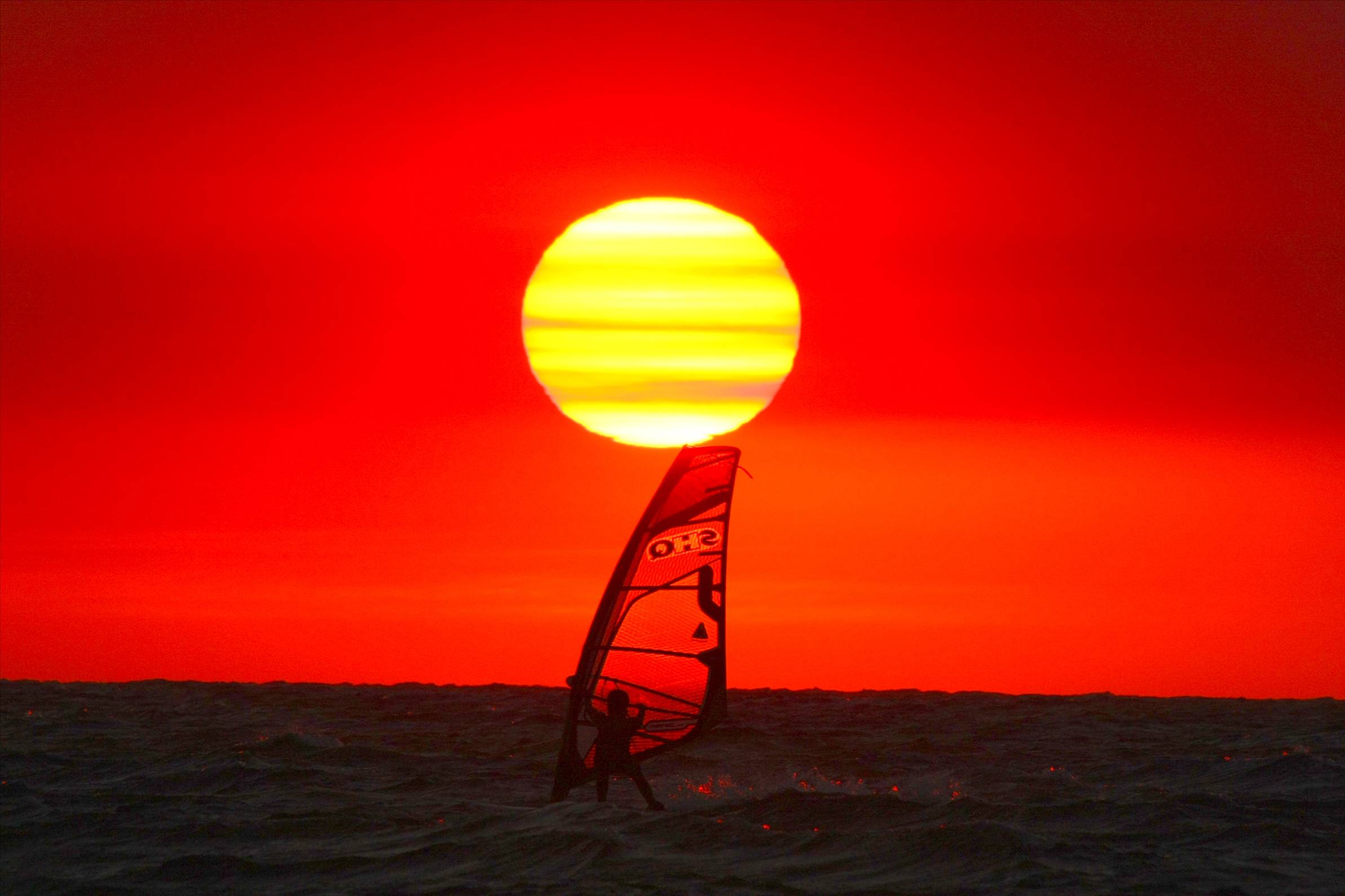 Windsurfing Bushfire sunset .