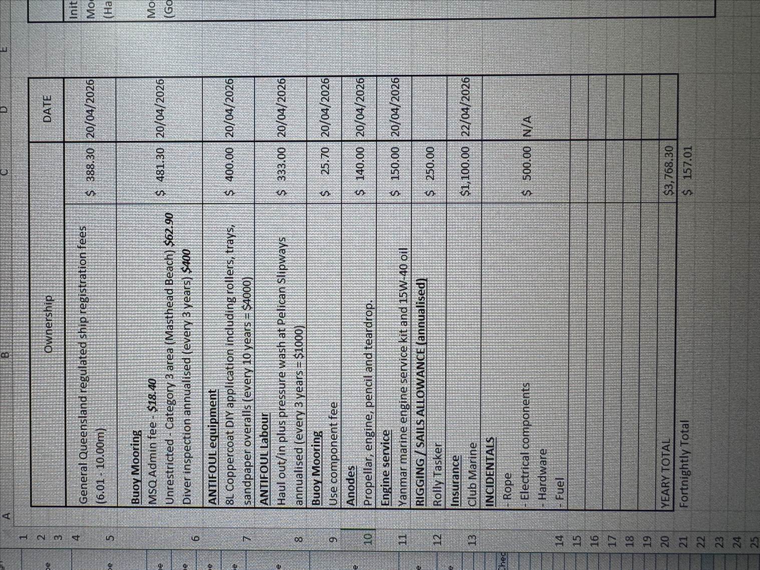 Sailing Updated spreadsheet