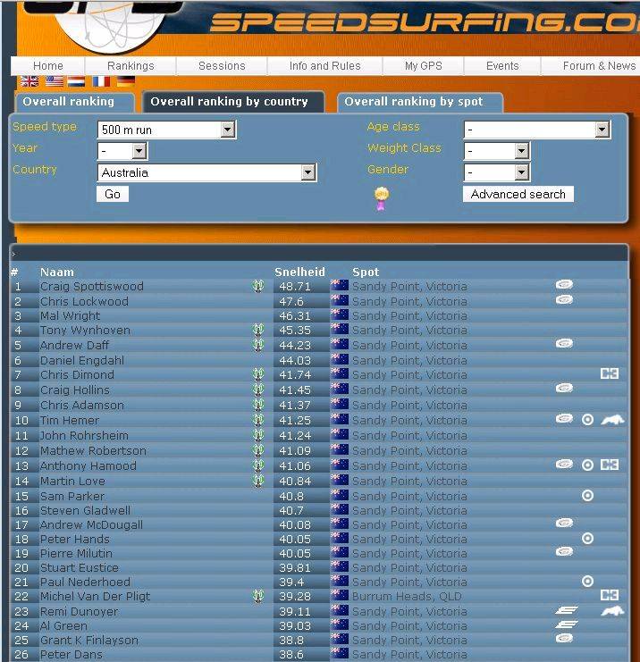 500m GPS-SS GPS Australian ranking 08-10-09