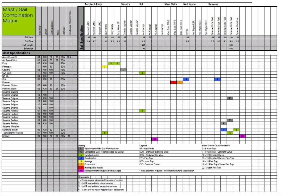 Windsurfing sailmastmatrix
