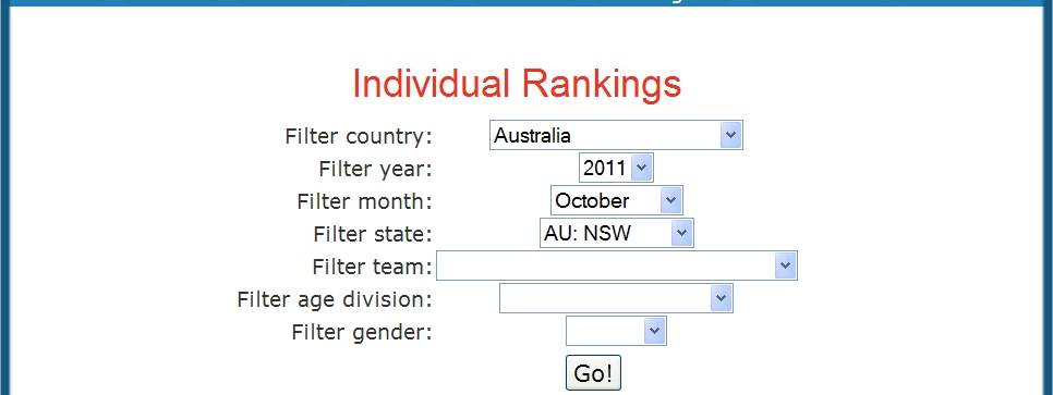 NSW RANKINGS FOR OCTOBER 2011 ( GPS TC )