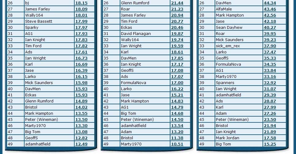 NSW December 2011 Rankings (GPSTC )
