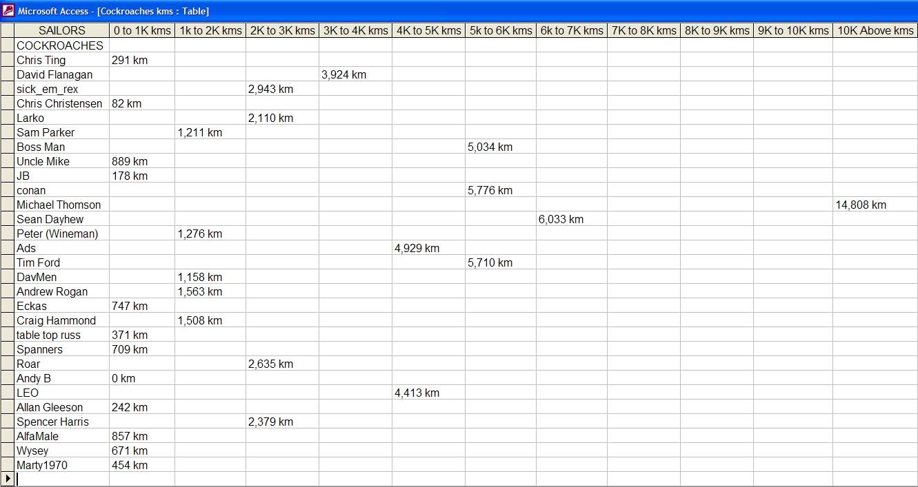 NSW SAILORS Accumulated Kilometres Table. (GPS.TC)
