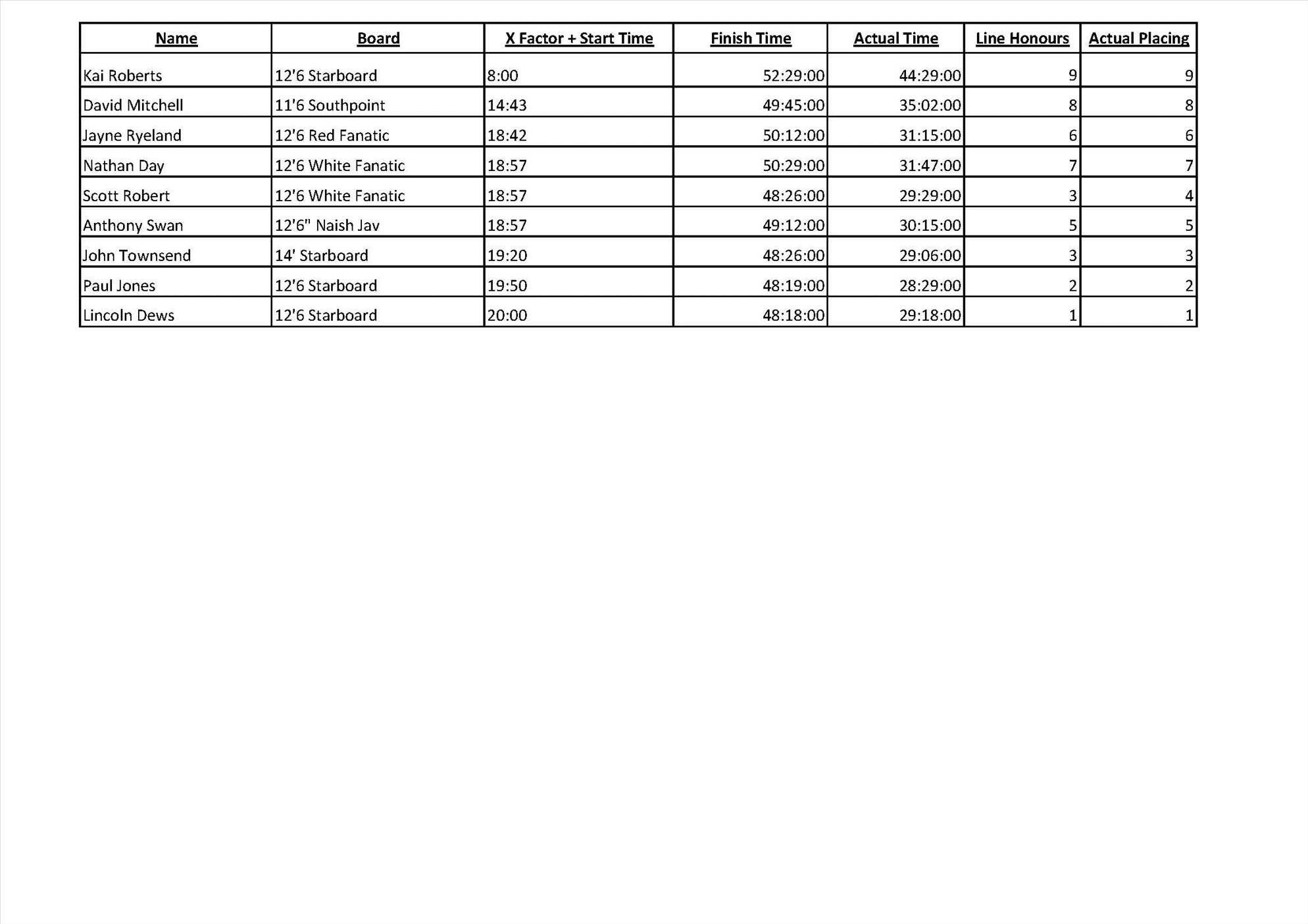 Stand Up Paddle Race 4 Results