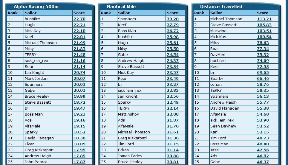 NSW Rankings for February 2012 ( GPS TC )