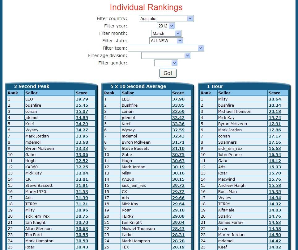 NSW Rankings for March 2012 ( GPS TC )
