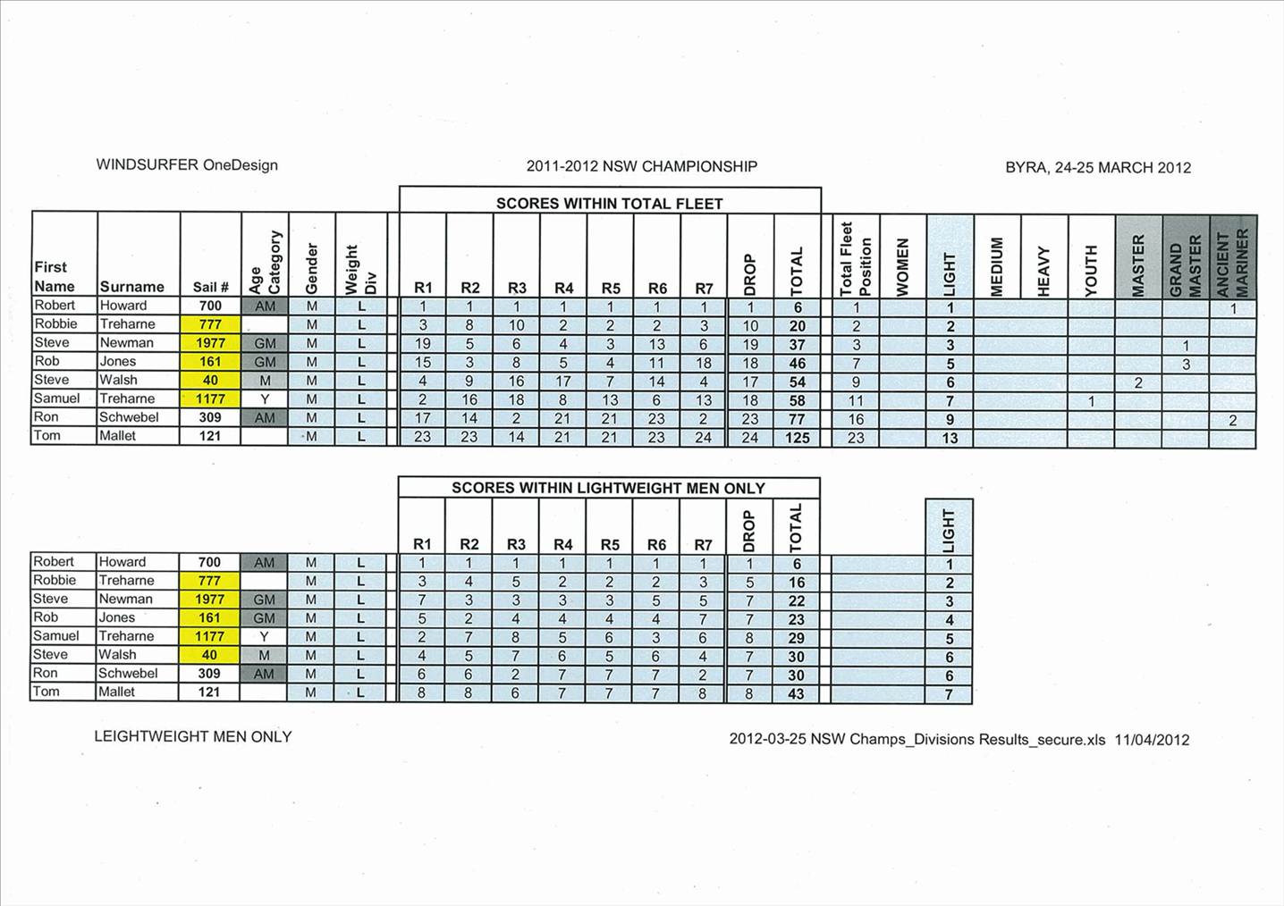 Windsurfing Regatta Results