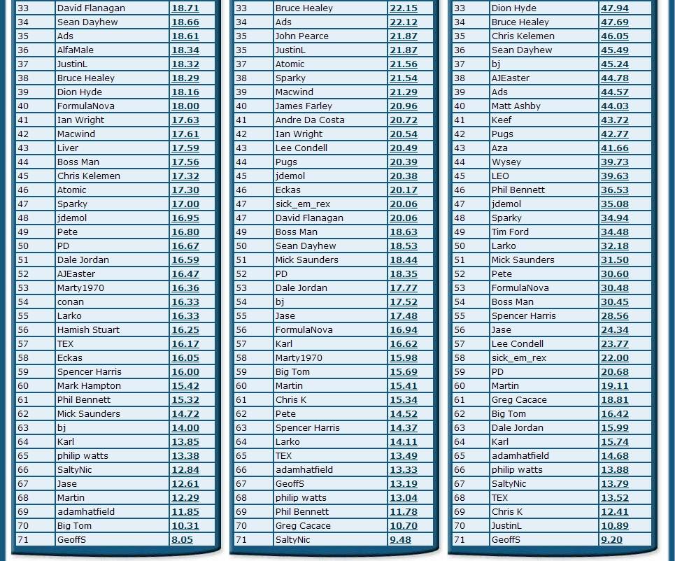 NSW October 2012 Rankings (GPS TC )