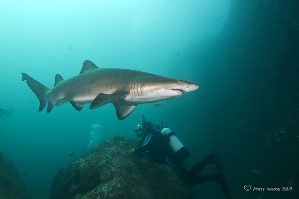 Diving Pete checking out a shark.