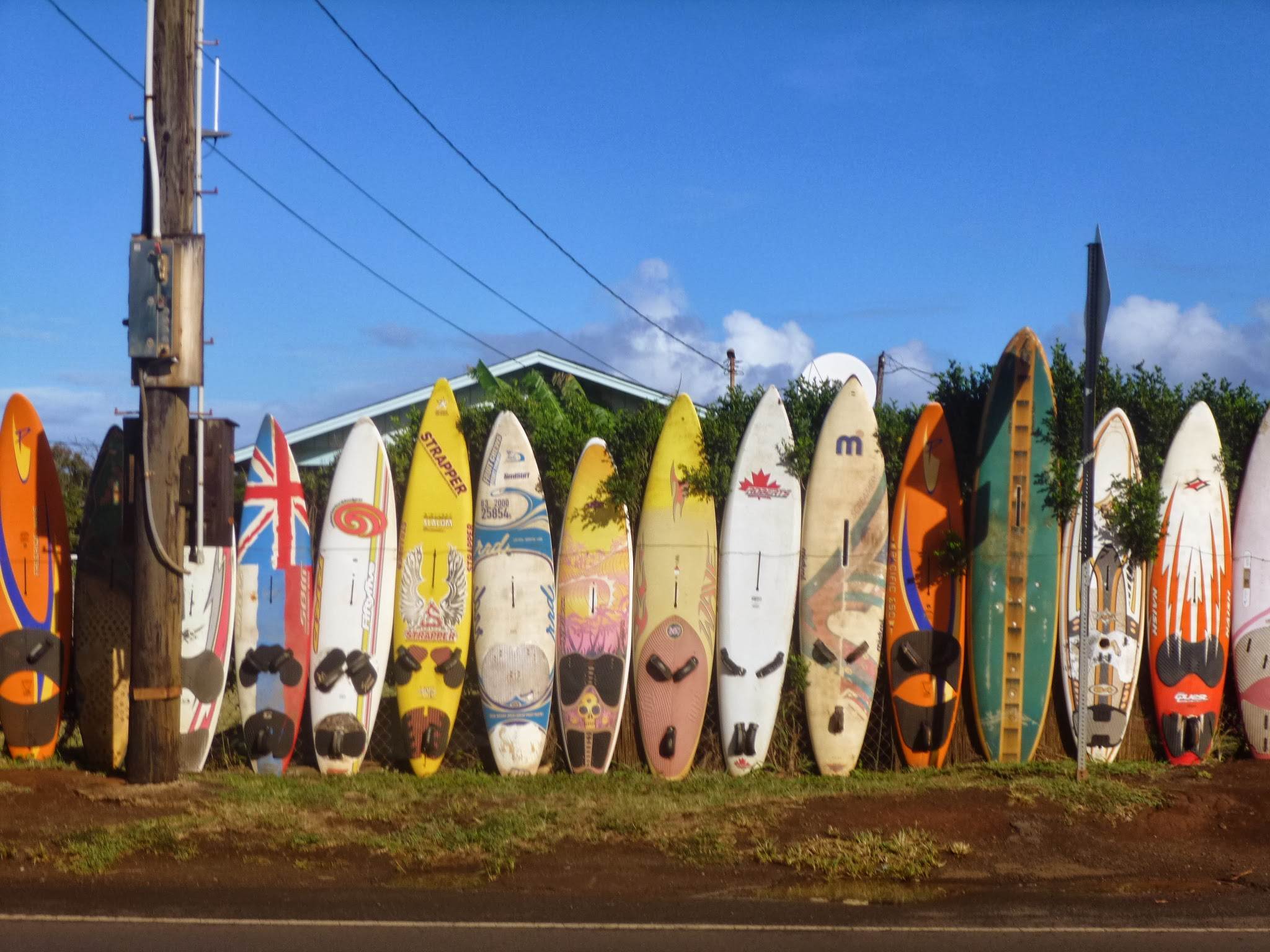 Windsurfing Fence of old wind/surfboards