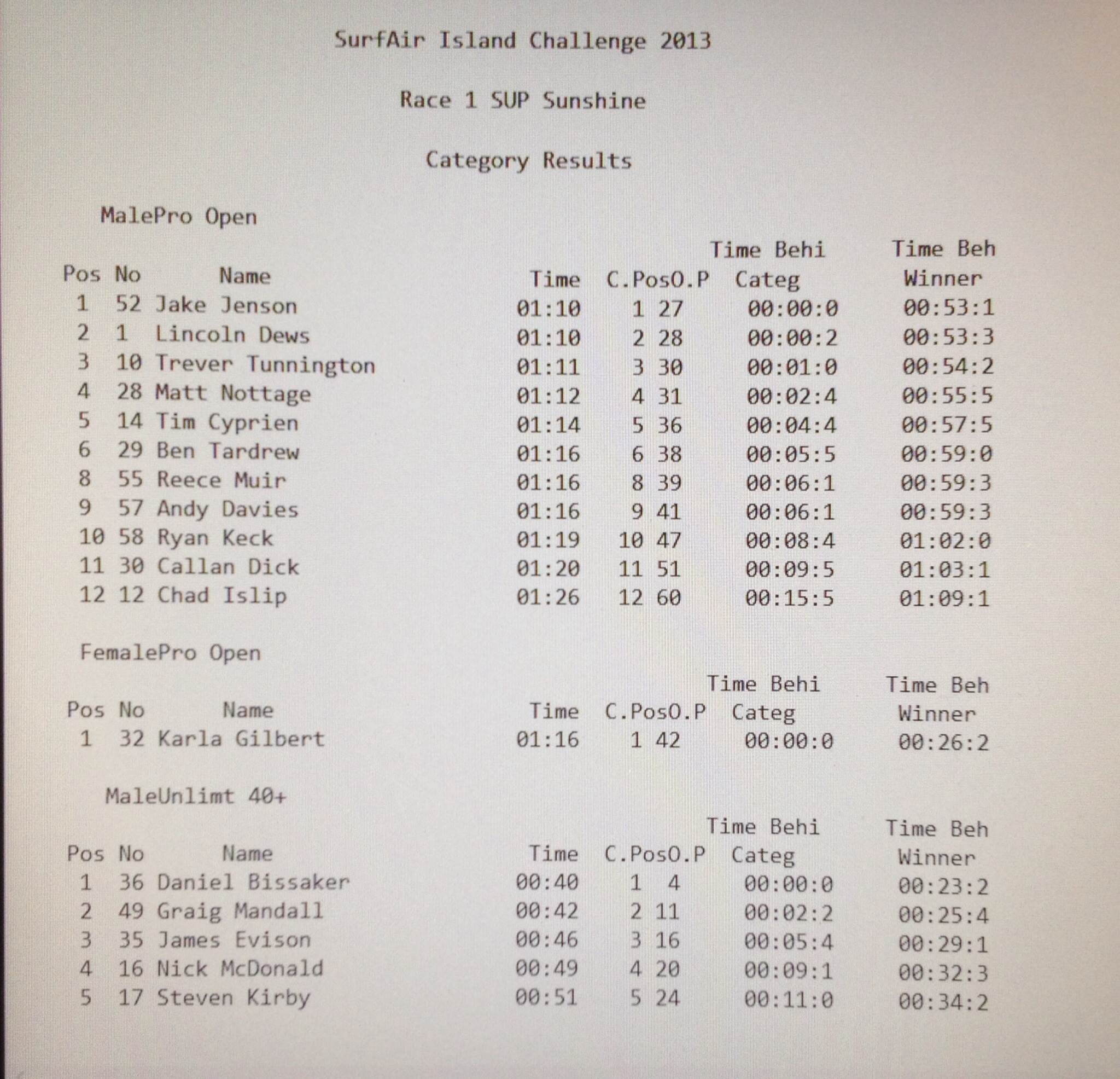 Times and Positions from the IC race