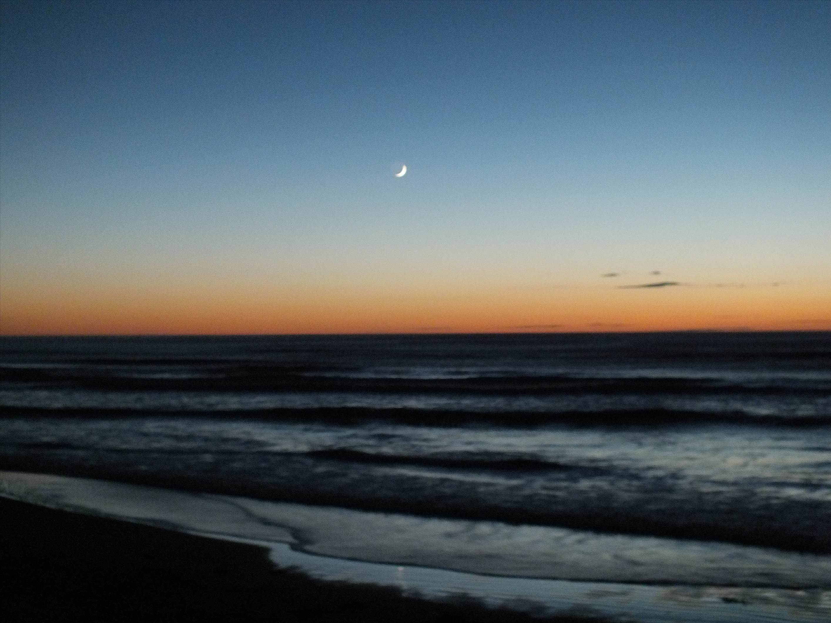 Crescent moon/sunrise over mak