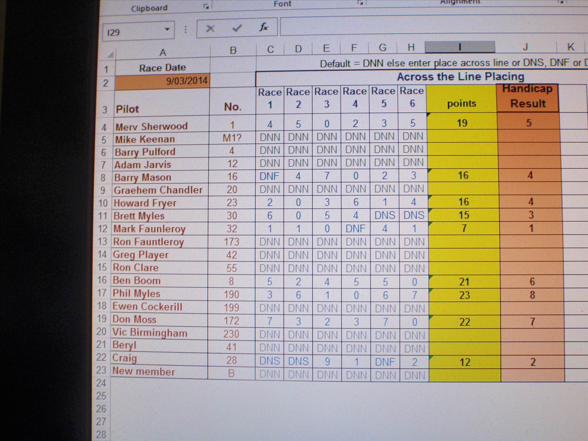 Land Yachting club 88 score sheet