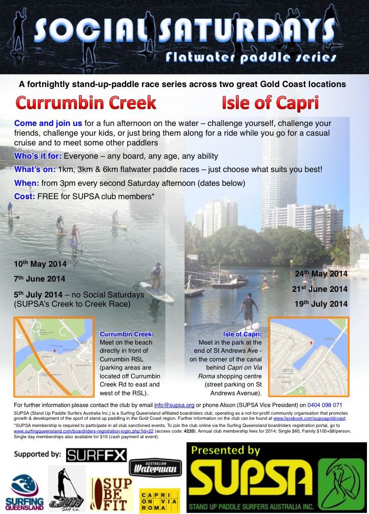 SUPSA Gold Coast Social Saturdays Flatwater Series