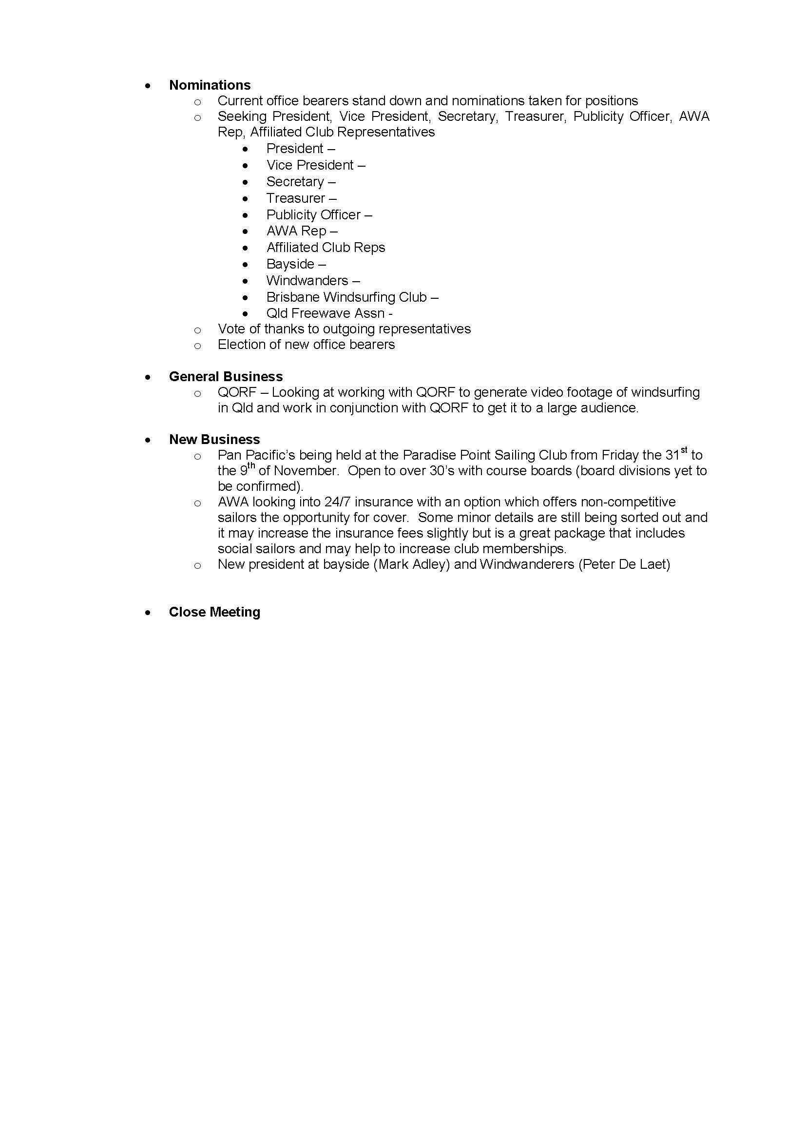 Windsurfing Queensland AGM