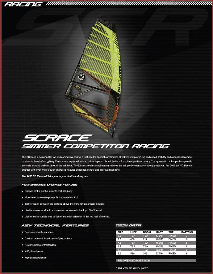 Simmer Style 2015 Race, Slalom and Speed sails