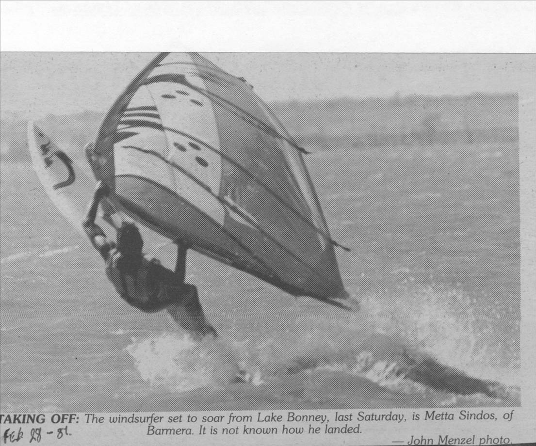 1987 Choco windsurfing on lake Bonney