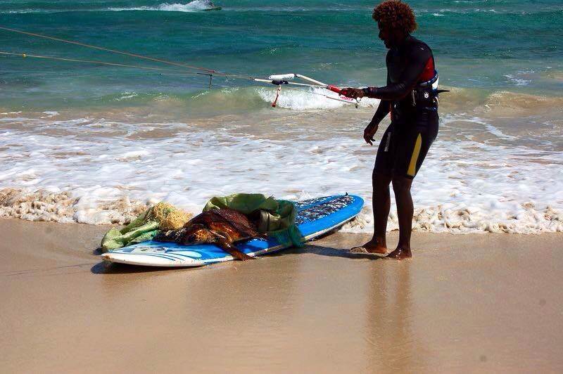kiter saves turtle