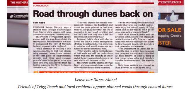 A new road through the Trigg Sand Dunes?