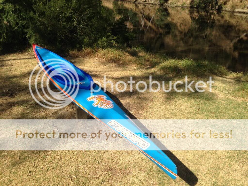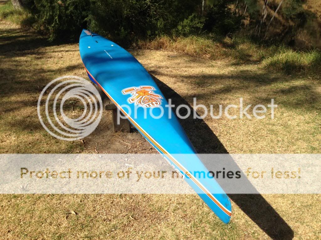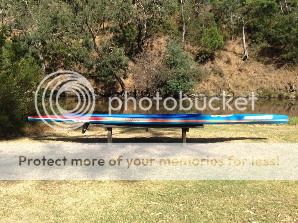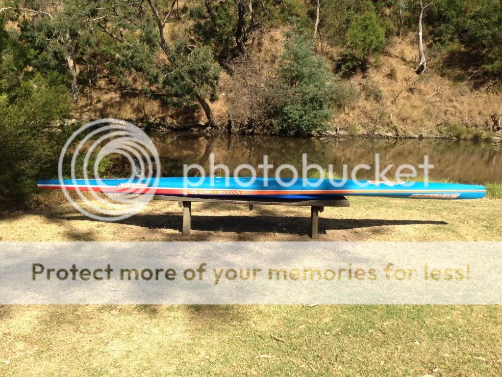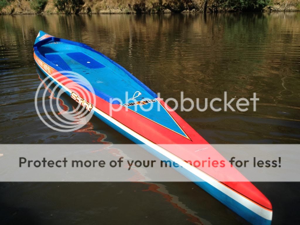 That's a mean machine!!! Had a brief paddle of Sam Parker's last weekend and I was staggered by the performance. So quiet through the water and effortless glide. A paddling buddy of mine tried to match me stroke for stroke on a narrow 14" but I pulled half a board length every stroke with ease. Very, very fast pure flat water racer. :)