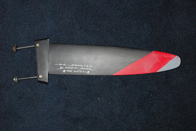 Context: 40cm Carbon fin (sorry, don't know the brand) off a 2000-2003 Mistral Panam Raceboard, Rig NP RSX 9.5, Centreboard Mistral Panam Carbon.