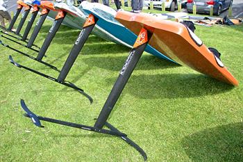I have a 110 litre mistral slalom that pepe has added a couple of parallel tuttle boxes to enable fangies to be sailed on lowish tides.
